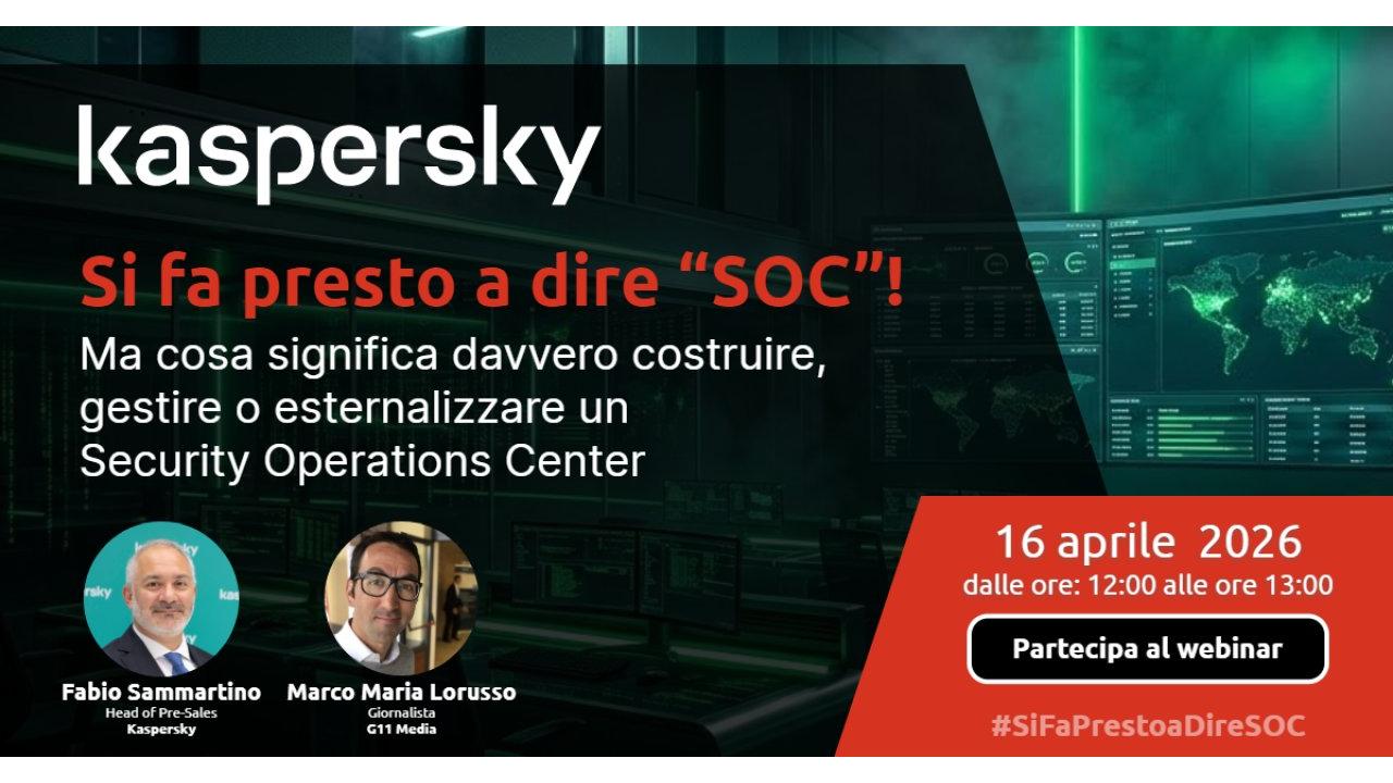Ma cosa significa davvero costruire, gestire o esternalizzare un Security Operations Center e perchè, oggi, è il passaggio obbligato della nuova cybersecurity a misura di AI, errori umani e nuovi attacchi automatizzati. Uno straordinario evento streaming in collaborazione con Kaspersky per capire come prepararsi per la più grande sfida/opportunità che il mercato della security sta offrendo a partner imprese.
